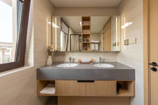 此次太行水镇之旅因选择易水山湖酒店而格外完美!我们入住的山景两居别墅不仅空间宽敞舒适,更拥有绝佳的观景视野——每日清晨推开窗,便能看见翠绿山峦与飞泻的瀑布,仿佛置身水墨画中。最令人称赞的是陈经理带领的服务团队,真正做到了“有求必应”:从贴心提供周边游玩路线建议,到迅速响应客房需求,甚至为我们提前准备了婴儿床,每一个细节都让人倍感温暖。