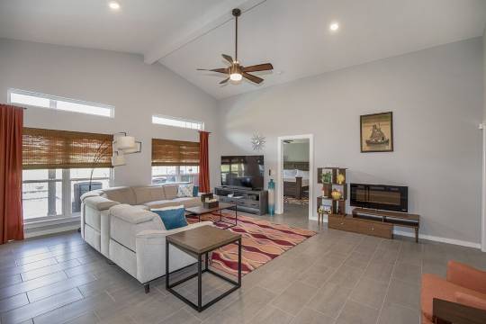 这里既有乡村的宁静,又靠近众多便利设施。室内装潢精美。房屋配备8英尺x18英尺(约2.4米x5.5米)的加热水疗池/泳池(水深3英尺6英寸至4英尺6英寸,约1.1米至1.4米),全年365天开放;前后均设有带顶露台;户外烧烤架;设备齐全的厨房;主卧和次卧均配备可调节床;第三间卧室配备双层床;另提供全尺寸充气床垫。提供无线网络。提供毛巾、卫生纸和洗漱用品。
