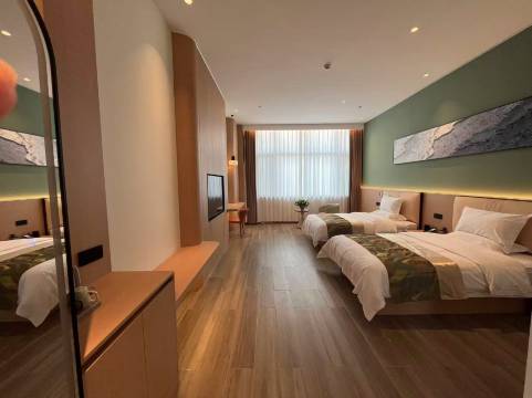 三人间床很大 空间也很大 三个成年人完全没问题 卫生间干净卫生 非常好停车 实物和宣传图一致 酒店自带餐厅可点菜味道很不错 家庭旅游很推荐!