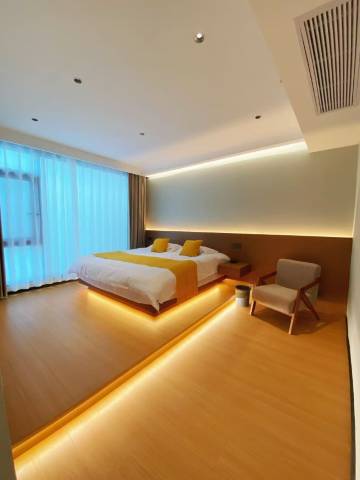带家人出来玩,在网上查了很多酒店民宿,最后选择了这家。入住很便利,店家服务很热情细心,有什么要求马上就满足了,房间干净,氛围很好,环境也不错,隔音很好!大厅里还有娱乐设施和小朋友一起玩耍的场地,一次完美的旅行因为这次入住,更让人流连忘返!
