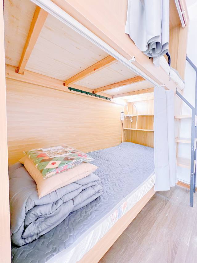 全是女生入住,每个房间都有密码锁,安全系数高,店家都有准备一次性床单被罩,还有牙刷耳塞和一包纸巾,很贴心。另外基础设施都有,暖气很足,每个床都带着窗帘,整体入住挺满意,还会再来的