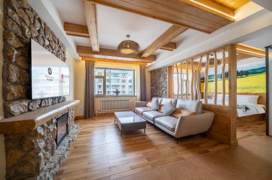 我从蒙古国到中国住过很多酒店,只有这个酒店最舒服最满意,从全木头装修,木味很浓,颜色看着也舒服,没有刺眼的颜色,机器人,全屋智能,盆景,花,壁炉都让人感觉特别的满意👍👍👍