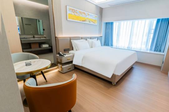交通条件便利,距离高铁站近,房间环境舒适,卫生干净整洁,设施设备条件优越,自动化服务周到,有机器人传送外卖,工作人员服务态度好,有问题打电话给前台会及时处理反馈,早餐自助种类多,舒适度高,入住体验感非常好!