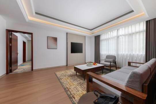 房间宽阔很大,床品很上档次,床很舒服。环境也是不错的,干净,安静。服务人员热情周到,态度热情。