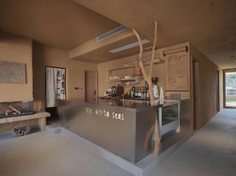 一楼是公区,住店的客人可以无限次免费续杯咖啡😘(但也不能喝太多啦…) 冰美式最好喝! 好像也对散客开放,点上一杯饮品看风景。个人感觉后院比前园更舒服,坐着、躺着皆宜,我们正好在台风天,一点儿都不晒,也是别样海景,云很高,可以望到很远…