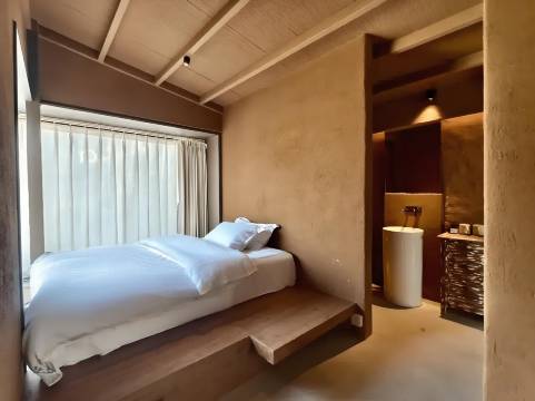 在平潭岛的海岸线上,「念就相见」如一首未写完的诗,等待朝阳为它填上最动人的韵脚。这里不仅是旅人的歇脚处,更是一处让时间慢下来的海景艺术空间,落地窗将天光云影与波光粼粼的大海框成天然画作。设计师保留闽东石厝的筋骨,用原木、亚麻和藤编软化空间的棱角,浴缸旁落地窗外的礁石群成为最野性的装饰画。这里适合捧一本未读完的书,等一场不期而遇的潮汐,或者,只是发呆,让海替你思考。