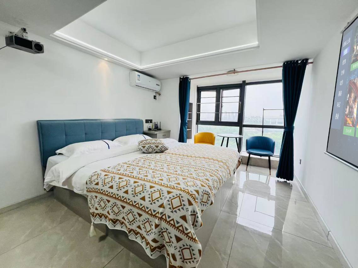 房间很大 环境不错 很干净 设备很齐全 还有大窗户 大屏影视只带会员 不需要额外购买会员 观影体验特别好 非常推荐!!