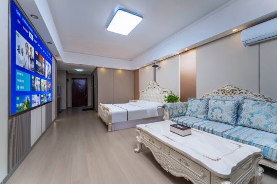 位置好,就在金凤万达广场,出门购物特别方便,2-3-4-都是实实在在的好吃店,交通也特别方便,公交车和出租车随时随地都可以乘坐。房间里环境挺好的。新装修的,房间里都是极米投影仪,效果特好,特清晰。感观好。还开通了SVIP会员,好多电影和电视剧都可以看。推荐入住。