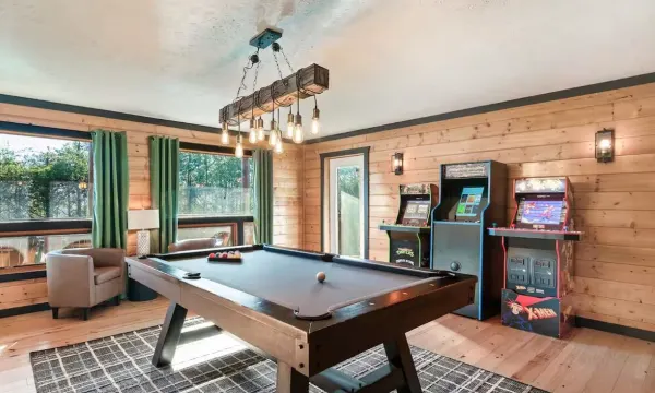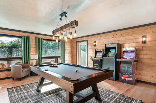 ✔ 游戏室 – 配备台球桌、沙狐球桌和 3 台街机游戏机