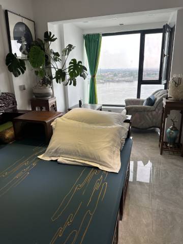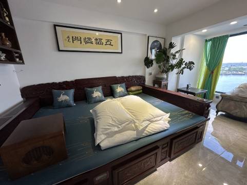 丹东市中心,临近火车站,在月亮岛上面,楼层观景鸭绿江一览无遗、断桥漂亮,对面可以看到北朝鲜人民日常生活,房间明亮,干净,整洁,硬件设施很新;非常舒适,配套设施完整优雅,让我们没想到的惊喜洗手间坐便是电动的,洗漱用品都是进口品牌的。性价比非常高,还有立式空调和厨具煤气,厨具,冰箱一应俱全!岛上很安静非常舒适,非常适合度假,家庭出游,出差订,下回来丹东首选她家!!!