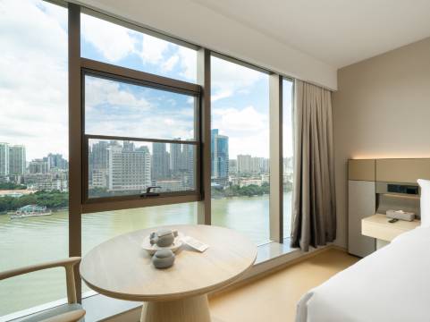 房间干净整洁,装修简约,酒店按要求提供了面朝珠江落地玻璃窗的房间,真的心情很好。早餐品种还可以味道不错。住在这里交通很便利,楼下就是天字码头,走几分钟到北京步行街,吃的东西很多晚上逛街方便又不热。