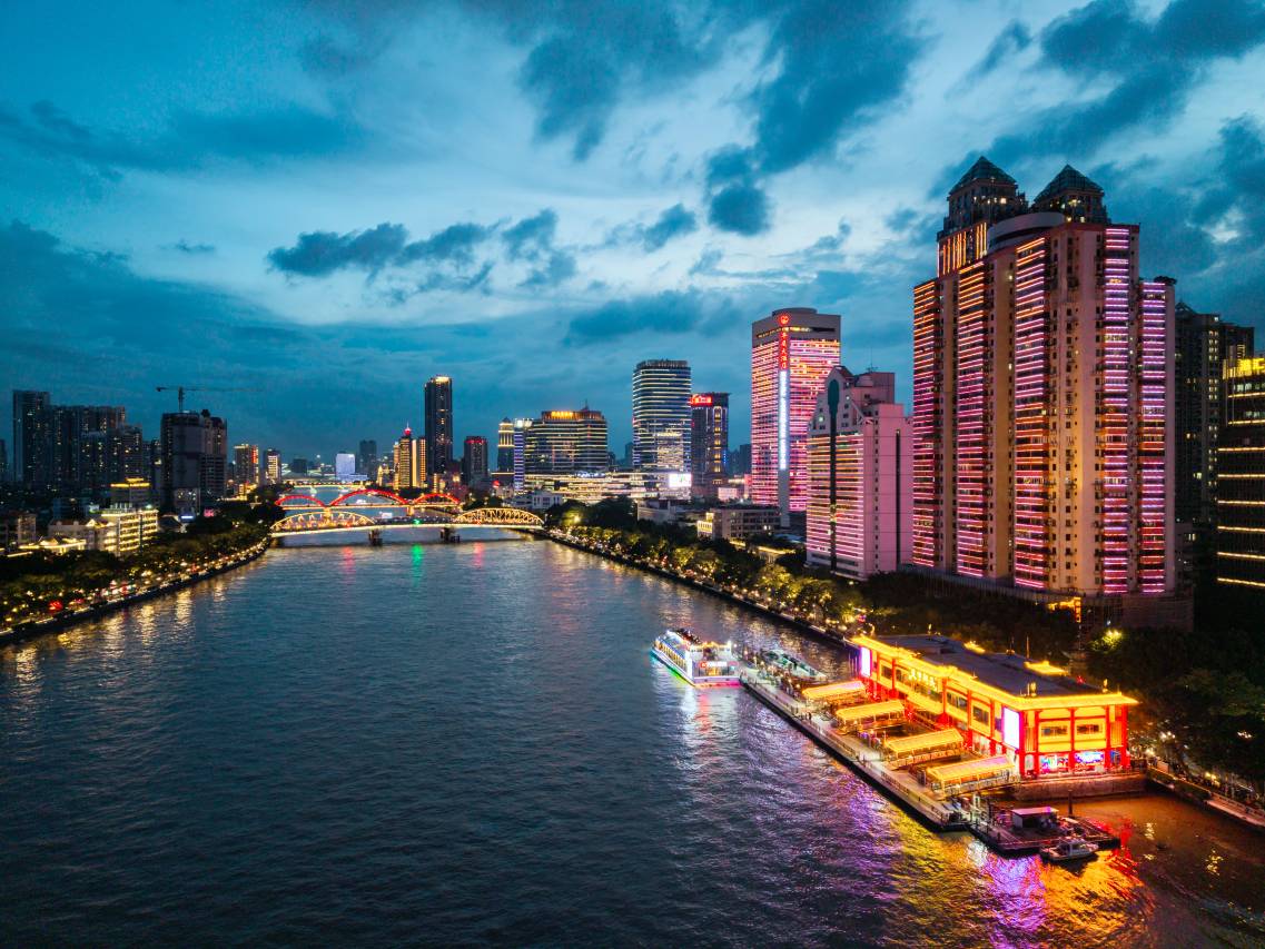 房间可以看得到漂亮的江景,珠江夜游的船经过时非常漂亮,回家后最想念的是这片江景