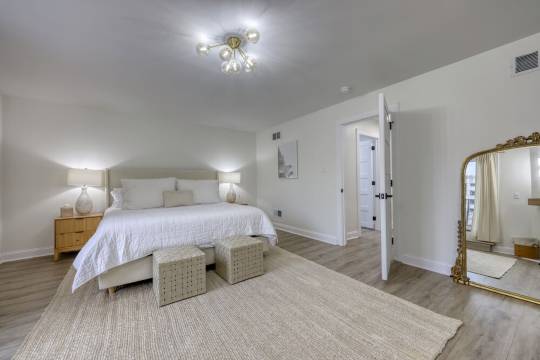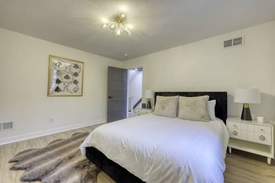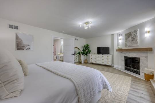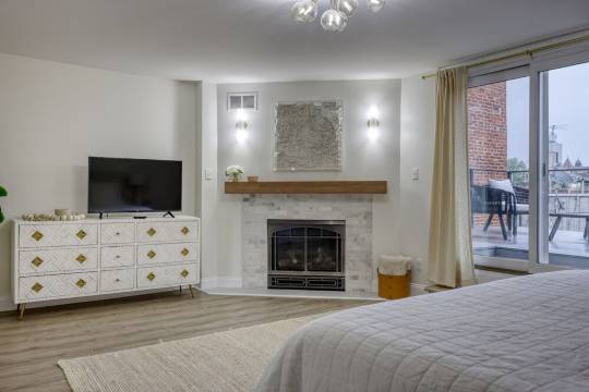 进入我们宽敞的客厅,映入眼帘的是定制的嵌入式书架、环绕立体声系统和智能电视。我们的厨房专为热爱烹饪的您而设计——配备超大尺寸的Thermador燃气灶,以及您所需的一切烹饪用具。我们还提供一张大餐桌,供您与家人朋友共享美食。厨房右侧是盥洗室,左侧是储物空间充足的食品储藏室。沿着宽敞的楼梯来到二楼,您会发现一间卧室,配备一张大号双人床和充足的衣橱空间。卧室右侧是一间设施齐全的浴室,配有定制的西班牙瓷砖淋浴间。浴室旁边是设备齐全的洗衣房,备有各种生活必需品。左手边的最后一扇门通往我们的主卧套房!您将拥有一个私人浴室,配备超大淋浴间、双洗漱台和独立式浴缸。您还可以使用两个步入式衣橱,衣橱内配有精美的骨木镶嵌梳妆台。继续前行,来到主卧,这里配备一张特大号双人床、一个私人燃气壁炉、一个大型骨木镶嵌梳妆台和一个超大私人阳台。来到三楼,您会发现另一个宽敞的起居空间,配备一张超大沙发和一台智能电视。这里还有一个带双温区饮料冰箱的吧台。三楼是我们的第三间卧室,配备一张双人床和一个带独立淋浴间的套房浴室。穿过滑动门,即可来到我们宽敞的屋顶露台,这里摆放着充足的座椅,您可以享用美食或品尝美酒,在沙发上欣赏日落美景。这里是放松身心、享受都市生活的最佳场所,地理位置优越,堪称城中最佳。
