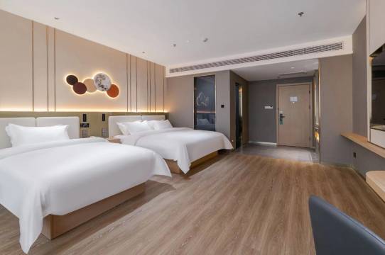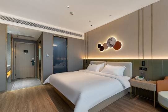 性价比很高的酒店,房间很大很宽敞,周边都是商超,吃饭购物娱乐超级方便,房间的花洒超级大,洗澡方便,出水也快,电视也是超大屏的,可以投屏,躺床上看电视很惬意,早餐到10点,营养又卫生,服务也好,点赞值得推荐