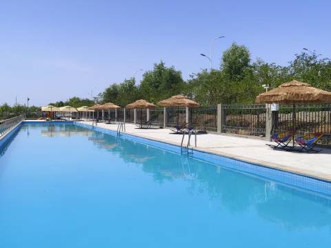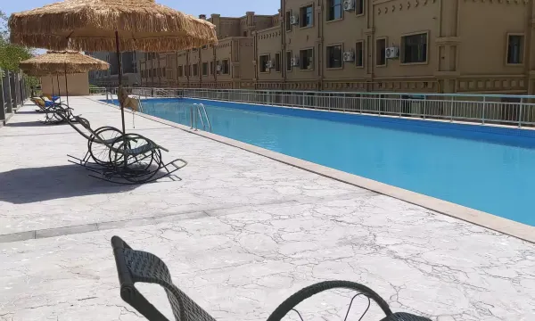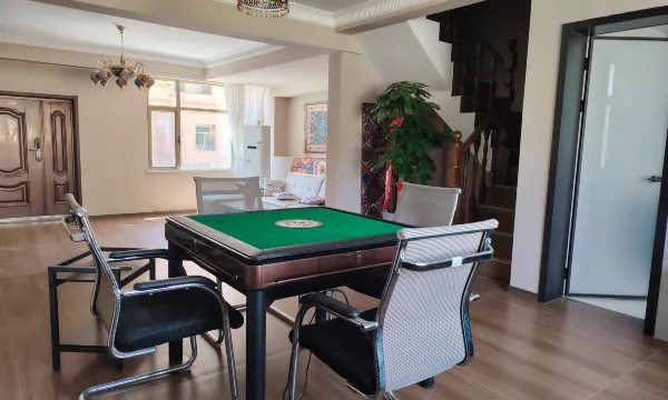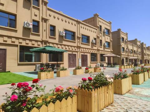 华郡如院民宿位于吐鲁番市高昌区新编一区湘江大道360号,是一家别墅区民宿,步入庭院,映入眼帘的是联排式的别墅楼栋设计,搭配舒适的户外休闲桌椅遮阳伞以及繁花似锦的绿植花篮,傍晚在庭院中欣赏绝美日落,感受时光的静谧与美好。民俗内配套设施一应俱全,超大露天泳池、沙疗养生、亲子乐园等,满足您对高品质度假的所有想象。每栋楼客厅分别配备了棋牌、游戏机、儿童乐园、桌面台球足球等。民宿共有72间客房,客房融入了地域文化和现代设计理念,将当地的自然之美与高端旅居体验完美融合。民宿还提供贴心的管家服务,从入住接待到美食行程规划,全方位满足你的需求,让你尽享无忧假期。