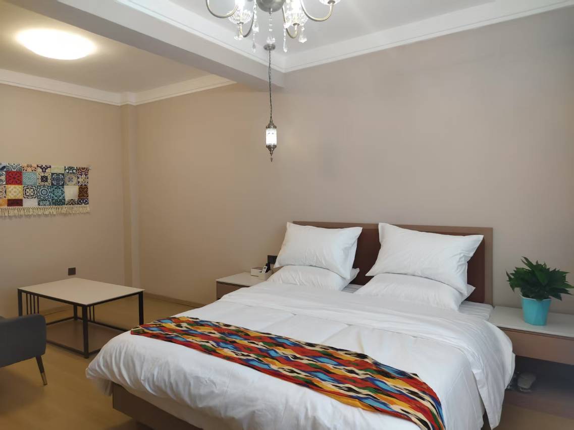 非常愉快的入住体验!民宿离吐鲁番北站近,位置优越,交通/觅食都很便利。房间比想象中更宽敞明亮,装修有格调,卫生打扫得一尘不染,床品柔软舒适,睡得很好。设施方面,WIFI给力,热水充足,一次性物品很实用,没有多余的乱七八糟不适用的。服务员热情周到,提前联系告知路线,有任何疑问都能迅速解答,还耐心的给我提供了旅游攻略。整体来说,性价比超高,超出了预期。下次来玩的首选!