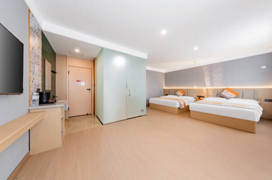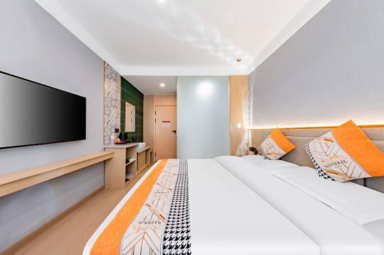 位置太棒了,还有酒店专门的停车场,出行超方便,周边美食购物一应俱全。前台服务热情专业,办理入住超快,还贴心介绍周边景点。房间宽虽然有点小,但床品柔软舒适,隔音效果好,一觉睡到天亮,体验感满分!下次来还住这儿,强烈推荐!