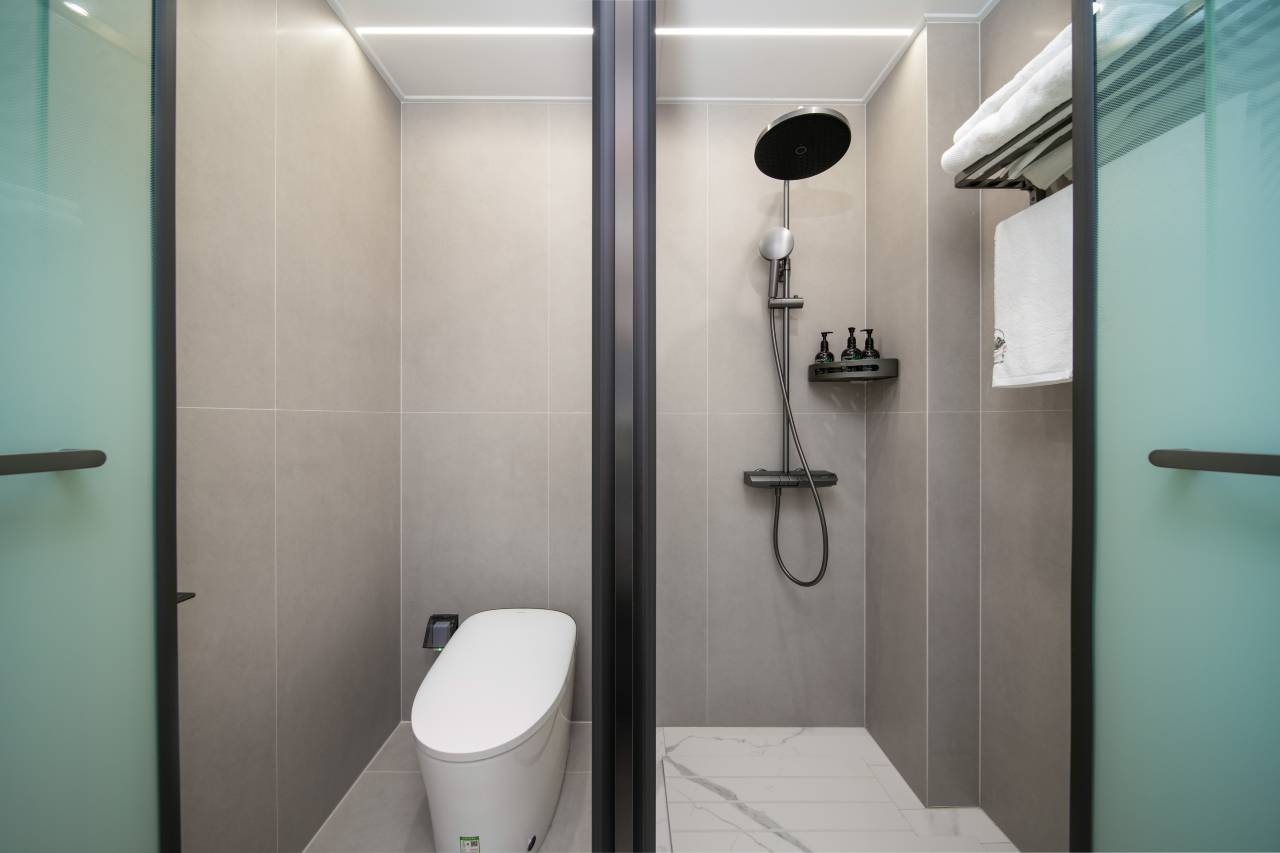 房间更是没让人失望。第一眼看过去就是“干净”,床单被罩没有一丝污渍,桌面、地板也擦得锃亮,完全没有山里民宿可能有的潮湿感。设施新到让人惊讶,卫浴和智能马桶都是九牧的,用着放心又顺手;全屋智能系统特别方便,语音就能控制灯光、空调,躺在床上调整环境超省心,在大山里也能享受到现代生活的舒适。