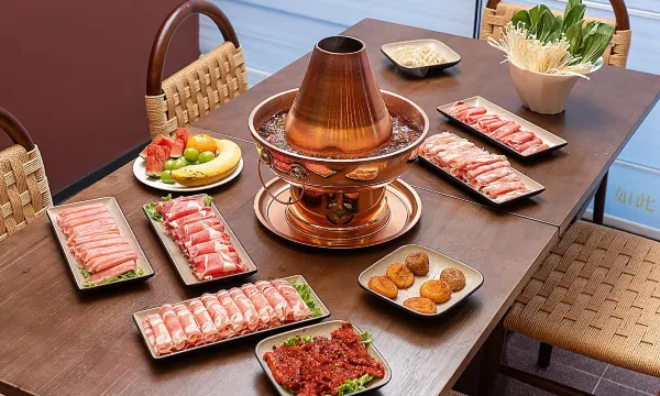 房间很干净,被子都是新的,被罩崭新的味道。在一楼吃的铜锅涮肉,已经很不错了。三个人吃了500,房间595。供氧气也不错很新。