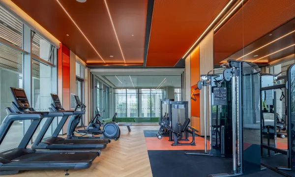 一进房间就被这种健康活力的氛围吸引了。房间非常宽敞明亮,最让我喜欢的是那个独立的健身区,瑜伽垫和基础的健身器材就放在床边,早上起来随时就能拉伸一下,唤醒身体。对于经常出差、作息不规律的人来说,这个设计真的太贴心了,完全符合它“健康平衡”的品牌理念。