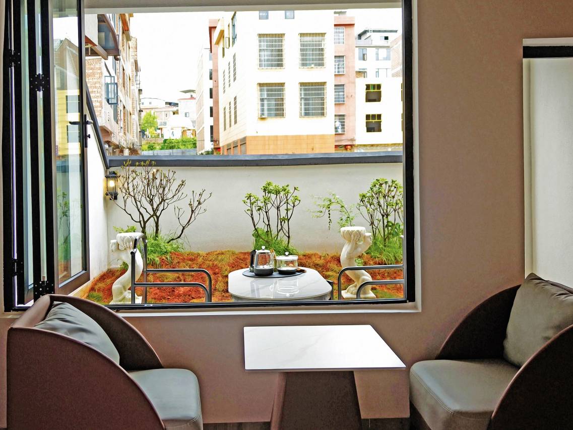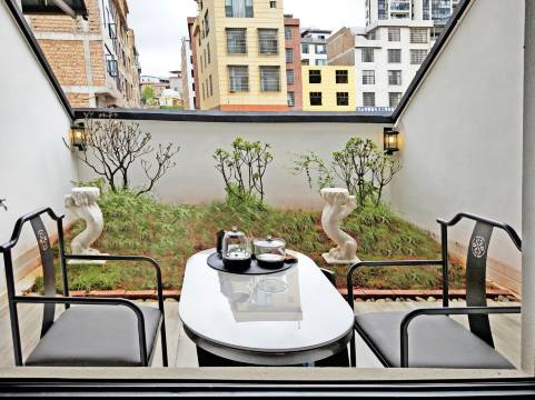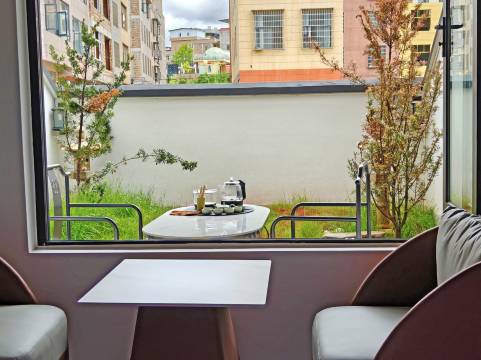 很意外,房间很大,装修风格很好,还有小阳台,坐下来喝喝茶特别惬意,房间很干净,虽然在马路边,一点不吵,前台小妹妹特别热情,还给我们茶,说是老板娘旅游带回来的,我喝是普洱,还不错,入住感很好👍👍👍👍