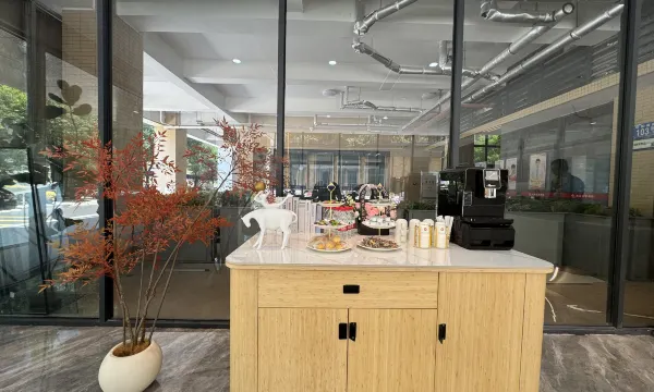 来出差参加展会,找到的一家酒店,设施齐全还有洗衣机,前台有免费的咖啡和零食,免费停车,房间干净整洁,外卖也有机器人给送到房间,住得很省心,交通也方便,前台服务态度非常好,下次还会来