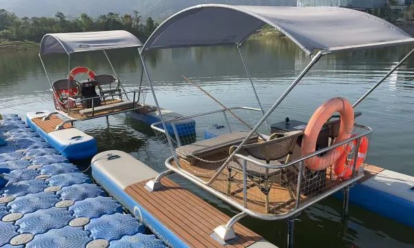 有一个人工湖,有桨板和游船项目