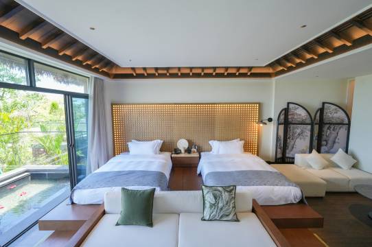超贴心的入住体验,必须五星好评!这次入住的酒店前台服务完全超出预期了,抵达时已是深夜,前台全程微笑接待,快速核对信息,3分钟就办好了入住,还主动递上温热的茶水,得知我们带了小孩,还额外提供儿童牙刷和儿童拖鞋,连每日活动预约方式和时间都贴心告知,还耐心解答了本地景点的交通路线。中途需要额外的毛巾,电话沟通后5分钟就送到房间。而且这里环境太绝了,独栋别墅藏在山海间,海景露台直面碧波,东南亚风庭院超静谧。设施很齐全,无边泳池与海相融,私家花园一应俱全。卫生更是无可挑剔,房间角落一尘不染,床品清新,泳池和公共区域也打扫得很及时,度假感直接拉满!离店时发现遗漏了充电器,前台不仅帮忙妥善保管,还主动询问是否需要快递寄回,全程高效又暖心。这样专业又有温度的服务,下次还来。