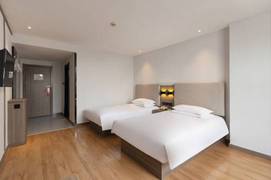 房间宽畅干净整洁,🛏️睡的舒服,还有安放了冰箱给客人使用,服务人员热情周到,保洁阿姨工作认真细致,酒店还提供免费早歺和免费停车场👍。