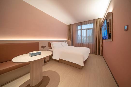 房间的设计简约又温馨,柔和的灯光让人一进来就放松下来。床铺睡起来软硬适中,搭配舒服的枕头,一整晚都睡得特别香。休息区和书桌的布局也很合理,不管是躺着追剧还是处理工作都很方便。