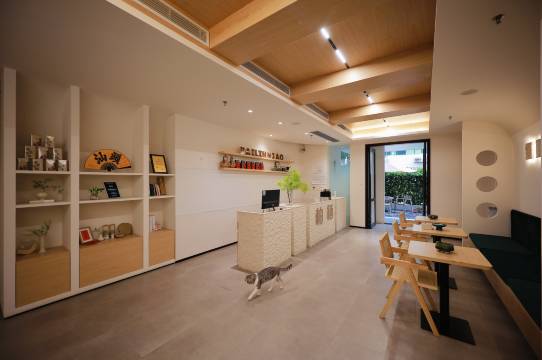 房间厕所干湿分离,床也是很舒服。酒店附近吃的很多。前台服务很满意。走路去小吃街也很近。酒店里的猫猫好可爱,一点也不怕人,好喜欢它。房间装修的也很小清新!安静
