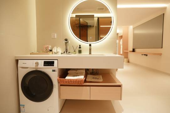 房子很新很干净,卫生做的很好,整体装修风格是很温馨的那种,住着非常舒适,还有带烘干功能的洗衣机,我们从高过河漂完流来这里住的,入住后把衣服放进洗衣机我们就沿着河边散步去镇远古镇吃东西了,离古镇很近,走路十几分钟,回来衣服就干了。大厅的香薰特别好闻!