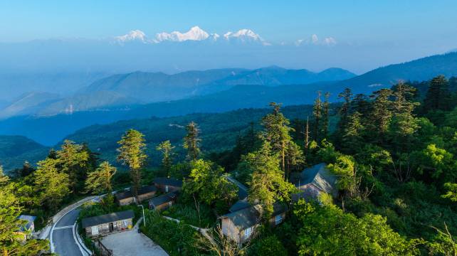 位置极好,酒店门口就可以看到日照金山