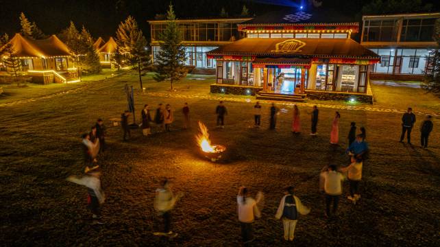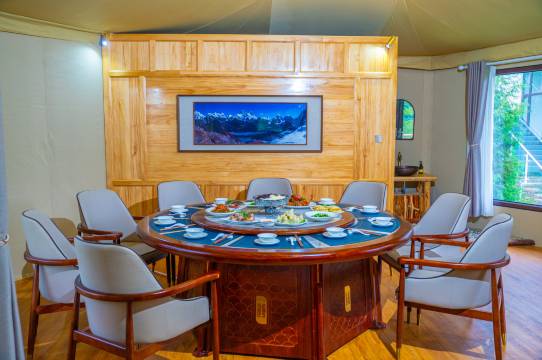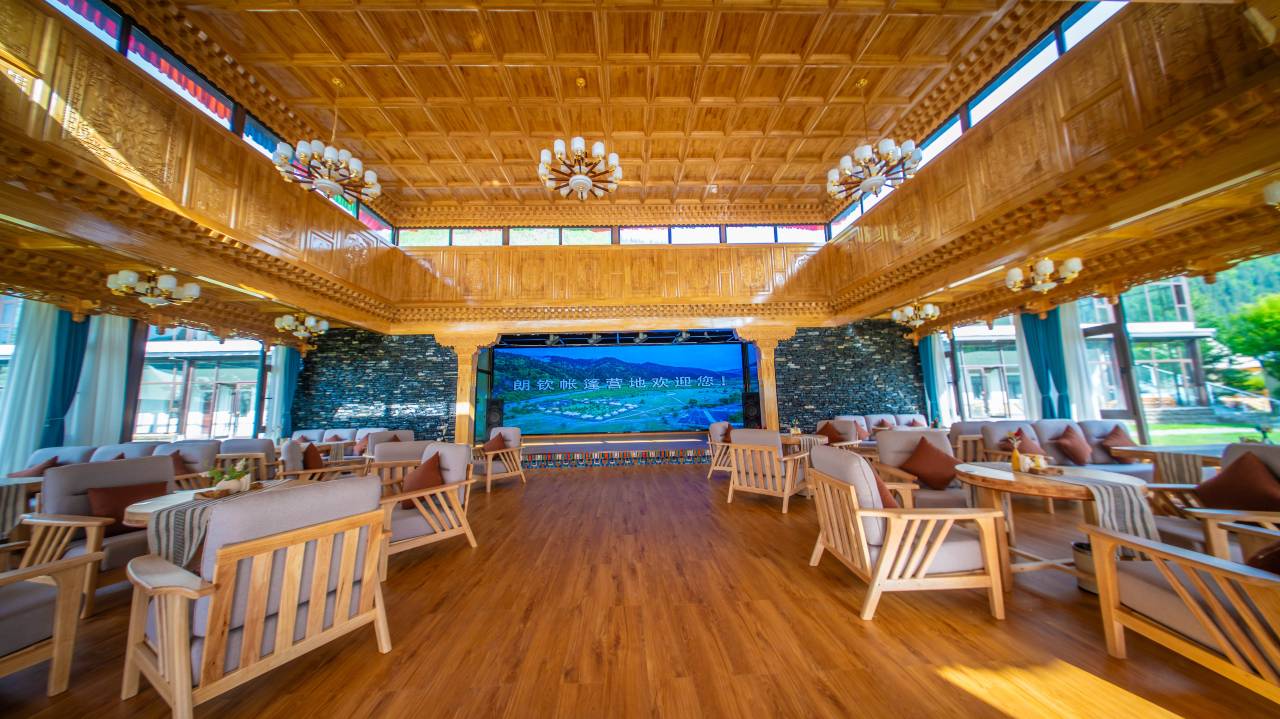 朗钦帐篷营地——甘南藏域的野奢秘境营地概览:朗钦帐篷营地位于甘南藏族自治州卓尼县,坐拥壮丽的高原风光与纯净的藏地文化,是一家按高星级标准打造的沉浸式野奢度假胜地。这里将原始自然与奢华体验完美融合,为每一位旅人提供远离喧嚣的“野”与“奢”的独特邂逅——白天徜徉于雪山草甸之间,夜晚栖息于星空帐篷之下,感受藏域秘境的诗意与宁静。 “朗钦”之名(藏语意为“象”),象征力量与祥瑞,寓意营地如巍峨雪山般守护您的旅程,带来吉祥与安宁。 营地配备多种野奢帐篷房型,均以环保材质与藏式美学匠心打造: 星空穹顶太空舱:全景天窗设计,夜晚躺观高原璀璨银河; 藏式风情帐篷:手工编织毯、铜器装饰,沉浸式体验藏族生活美学; 帐篷套房:推窗即览私人湖景,独享静谧水岸时光。 所有帐篷均配备地暖系统、高端卫浴及定制家具,在粗犷自然中保障舒适品质。 藏地文化沉浸式体验 :骑马漫游草原、射箭场体验传统竞技,或参与藏香制作、祈福等特色活动; 自然野趣探索:营地内设人工湖垂钓、环湖徒步道,周边可前往车巴沟探秘原始森林,或邂逅珍稀野生动物; 星空篝火晚会围炉夜话,品尝藏式烤全羊,与族人共跳锅庄舞。 朗钦餐厅主打“高原原味”,提供藏式牦牛肉火锅、酥油茶、糌粑等传统美味,同时融合川粤菜系,满足多元味蕾需求。湖畔酒吧供应特调青稞酒与高原咖啡,伴您静赏落日余晖。 配备多功能帐篷会议室,可承接高端团建、文化沙龙及藏式婚礼定制服务,专业团队提供活动策划与民俗仪式指导。 在朗钦,与雪山对话,与星空共眠——开启您的藏地野奢传奇。