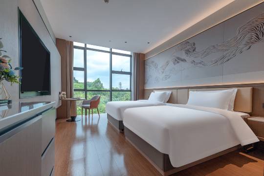 万达附近宝藏酒店诶~出门骑行小电驴就是商圈,酒店楼下就有很多小电驴可以租赁,前台很贴心帮升级了房型,在这个位置看到马鹿山的山头别有一番风味,3,4月柳州的紫荆花也陆续开放,这时候也已经看到少量的紫荆花了,在这住宿逛街购物超便利,楼下美食就有一条街到了晚上蛮热闹的,靠近柳州白宫网红打卡点,旅行拍照超方便。房间视野好、采光佳,干净整洁无异味,服务细致贴心,整体体验超棒