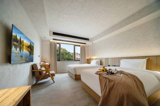 酒店接待人员非常贴心,房间气味清新宜人,仿佛置身于大自然之中,榆木的家具风格我很喜欢,让人放松又愉悦。淋浴设施也是一流,出水强劲且水温稳定,我很喜欢这家的花洒,小巧玲珑很方便,洗去了一天的疲惫,整个人都清爽了许多。巨幕投影仪让我感到很惊喜,看电影超级棒,尤其是沙发和投影的结合非常完美,整体来说,这次入住体验非常棒,酒店在各个细节上都做得很到位,有机会还会再来!