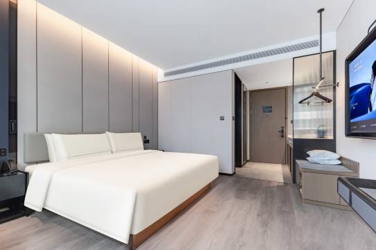 酒店坐落于上海北外滩核心地段,毗邻大连路地铁站,以其便捷的交通与独特的都市格调,为商旅宾客打造了一处融合舒适与智能的休憩港湾。酒店步行即可抵达地铁站,无缝连接陆家嘴金融区、外滩万国建筑群等城市地标,是商务出行与休闲探索的理想起点。 酒店以现代简约风格为基调,巧妙融入艺术元素,营造出静谧而富有质感的居住环境。从大堂至客房,每一处细节均彰显对美学与功能的双重追求。 酒店秉承亚朵品牌“人文、温暖、有趣”的理念,提供 24小时管家服务、免费夜宵及图书借阅等特色权益,让每一段旅程充满温度。无论是高效商务出行,还是探索城市风情,北外滩大连路地铁站亚朵酒店皆以精致空间与细腻服务,为您开启超越期待的旅居体验。 酒店设有相招(餐厅)、洗熨烘干自助出尘(洗衣房)及超大阅读会友竹居(24小时阅读空间)汗出(健身房)宿归(客房)的设计中 融入自然、淳朴、静谧、温暖的设计风格,无不精心优致,独具匠心。为你提供一个自在、放松的居停空间。在这里,能够休憩、充电、放松,是商务出行及旅游的佳选。