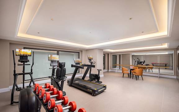 3.外卖是机器人送的,他们的健身房也特别大,房间卫生也很干净,卫生间干湿分离的,热水也很稳定,床垫躺着很舒服。