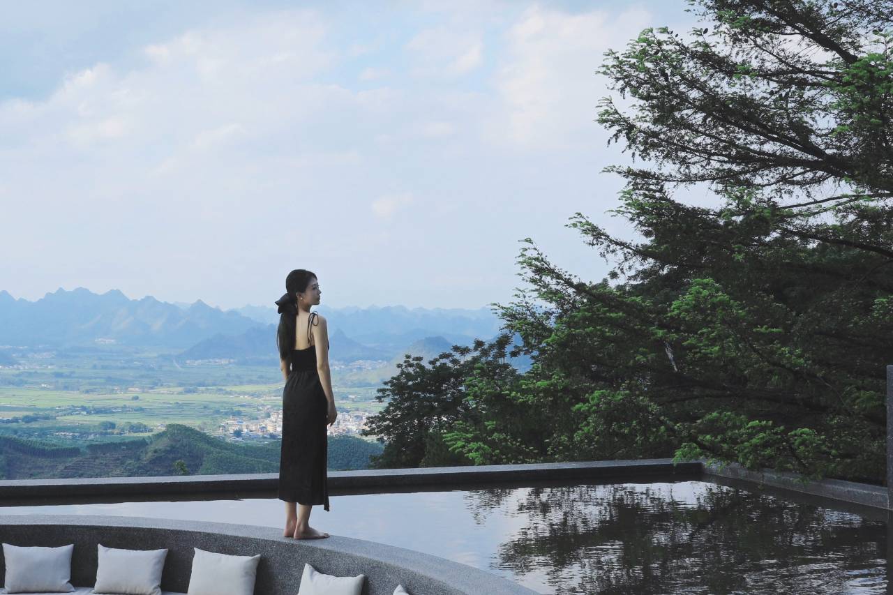 最让我们心动的就是无边泳池!建在山腰位置,碧蓝的池水和远处的青山、白云连在一起,白天躺在泳池边的躺椅上晒太阳,看山风吹动树叶,仿佛整个人都融入了自然里;傍晚时分,夕阳洒在水面上,随手拍都是氛围感大片,完全不用滤镜。