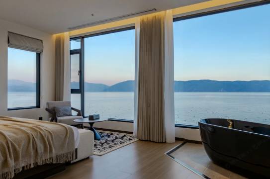 实际入住果然惊喜。民宿服务细致周到,房间干净得一丝不苟。最爱那面巨大的落地窗,正对洱海,玻璃隔音极好,晚上既听不见海鸥鸣叫,也听不到浪涛声,睡得特别舒服。
