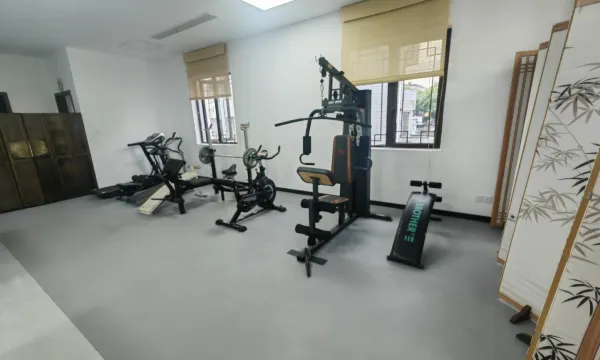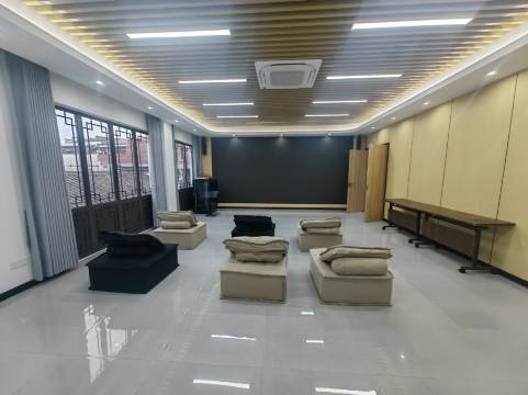 就在老街上,出来就是炸街的起点,老的徽派建筑民居改的,可以看到以前的木工木雕,设施是新改的,吹风机居然用莱芬。可以建身,导致娃回来要去找打乒乓球的场馆,唉。