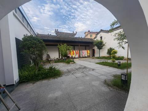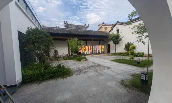 民宿的中式外观超吸睛,白墙黑瓦搭配特色墙绘,传统与艺术感融合。庭院里绿植葱郁,下雨时地面微润,竹叶轻晃,漫步其中,仿佛走进古雅的江南画卷,沉浸式感受中式美学 。