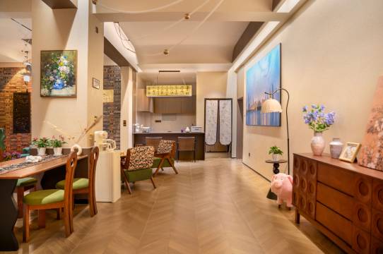 老板非常热爱生活,花花草草处处用心,每个角落都有老板养的小金鱼,让人内心平静。适合一家人一起,房间设施很新,卫生打扫非常干净。