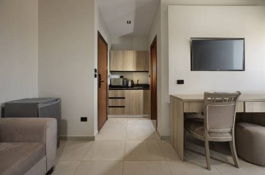我们在Rivana Residence酒店住了一晚。一开始酒店的位置有点让人摸不着头脑,因为它没有那种很大的酒店招牌。不过一进去,前台就很热情地接待了我们。我们住的公寓很不错,感觉我们是这间房甚至是整栋楼的第一批住客之一。所有东西都非常干净,房间里有烧水壶、微波炉,还有一些餐具。房间里还配有沙发和一张大书桌。总的来说,这次住宿体验非常棒,如果我下次还想在第五区附近找住处,这绝对会是我的首选之一。