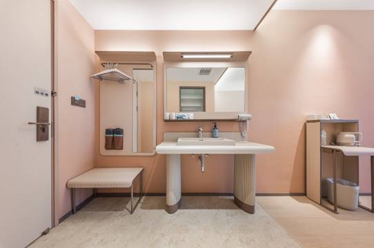 一进大堂就很舒心,前台办理入住高效快捷,房间打扫得一尘不染,卫生间无异味,床软硬适中睡得特别香,细节处见用心,值得信赖~