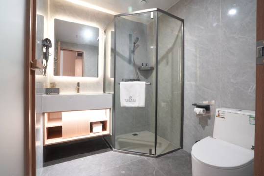 经常出差定酒店,没想到这个价格这个住宿环境真的太惊艳了。水压特别大,水温也比较合适,洗澡非常舒服,卫浴选品非常不错。