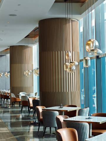 青岛五四广场海景美仑美奂酒店傲立于青岛市南CBD——市南区香港中路,与五四广场、奥帆中心等城市地标为邻,坐拥得天独厚的一线海景,地铁交汇的便捷路网,堪称商务与度假的理想之选。享云端美景、城景客房及套房,以匠心雕琢细节,为宾客呈献便捷高效的尊享旅居体验。暮色四合时,海景客房化身全景画框,将璀璨霓虹与粼粼波光尽揽入怀;24层云端之上的健身房、餐厅与会议室,以108米的凌空视角,将碧海蓝天与都市繁华铺展成震撼人心的视觉长卷。