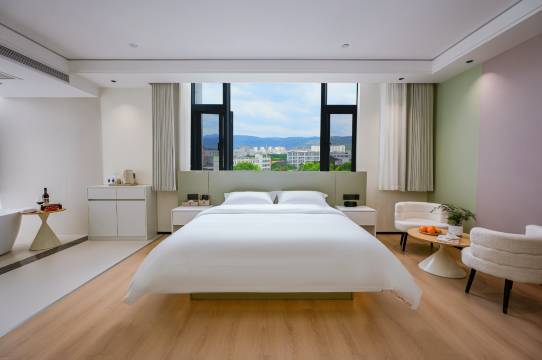 周末出游选这家酒店太明智了!门口扫个小绿车2块钱就可以到网红小吃街,逛吃超方便。房间采光特别好,阳光洒进来很舒服,像在自己家一样,床品软硬度刚好,睡了一晚全身都放松了。保洁阿姨很细心,卫生做的特别干净,每天都会补满矿泉水和洗漱用品,细节满分,推荐!
