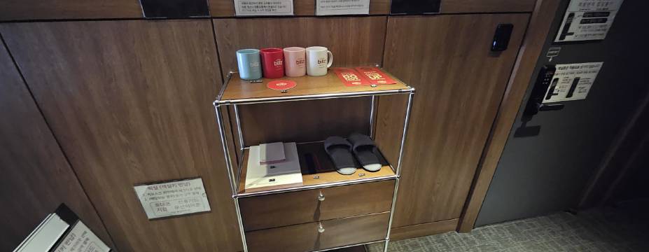 虽然是无人值守酒店,但设施信息在各处都有清晰的展示,非常方便。免费提供的设施也很不错,我很开心可以免费使用二楼的咖啡和饮料服务。