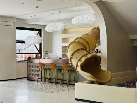 设施很齐全啊,小朋友大厅的活动空间很大,还有个室内旋转滑梯,一些孩子玩的玩具,大厅住的房间都准备了,体验感蛮好的,房间内还有孩子玩的滑梯,环境也很好,家长跟着蛮放松的嘞,卫生干净,服务很周到,期待下次有机会还会来这里哦